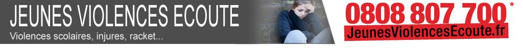 7 jours sur 7, de 10h à 22h Les psychologues et des juristes assurent une écoute, une information, une orientation pour les jeunes confrontés en Ile de France, à des situations de violence et au racket, que ce soit au sein des établissements scolaires ou en dehors. |